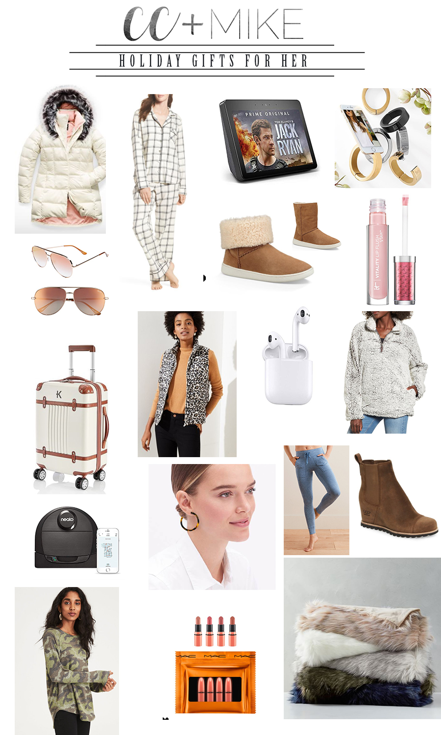 CC and Mike Holiday Gift Guide best gifts for Her Holiday 2018 best leopard gift items personalized carry on luggage ugg pajama set best fleece pullover